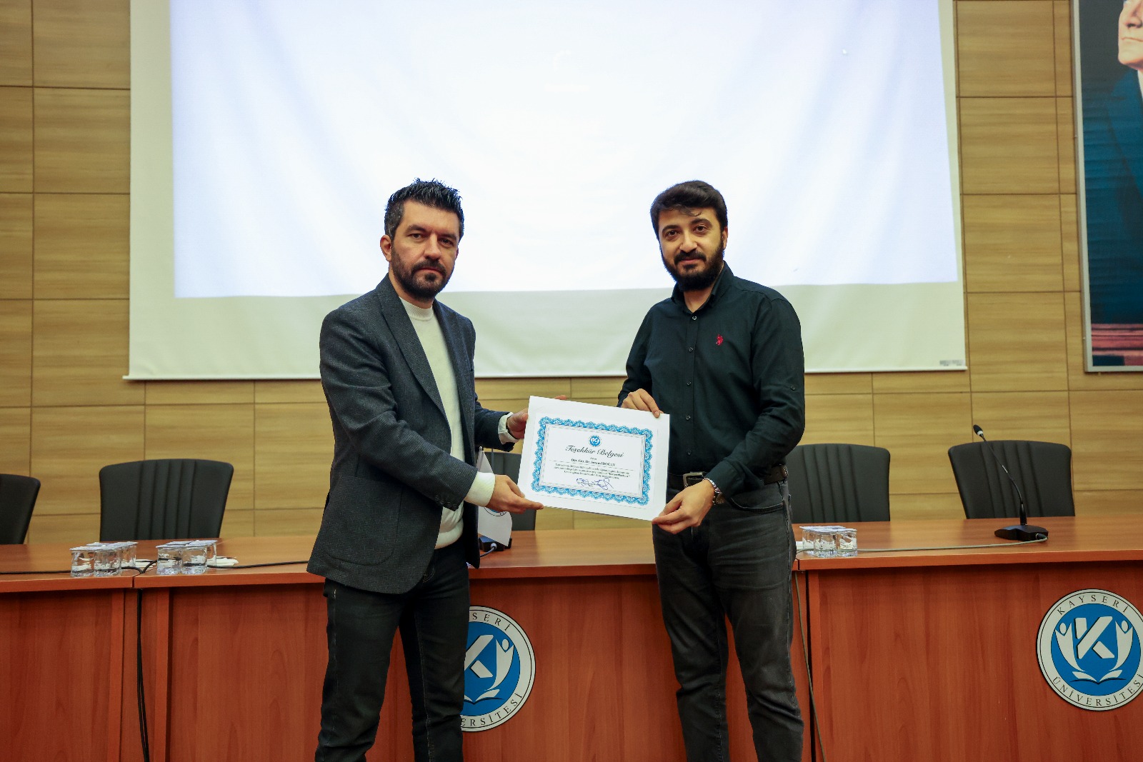 Eğitimin sonunda Şube Müdürü Süleyman TAŞ tarafından Öğr. Gör. Dr. Sermed DOĞAN'a teşekkür belgesi takdim edildi.