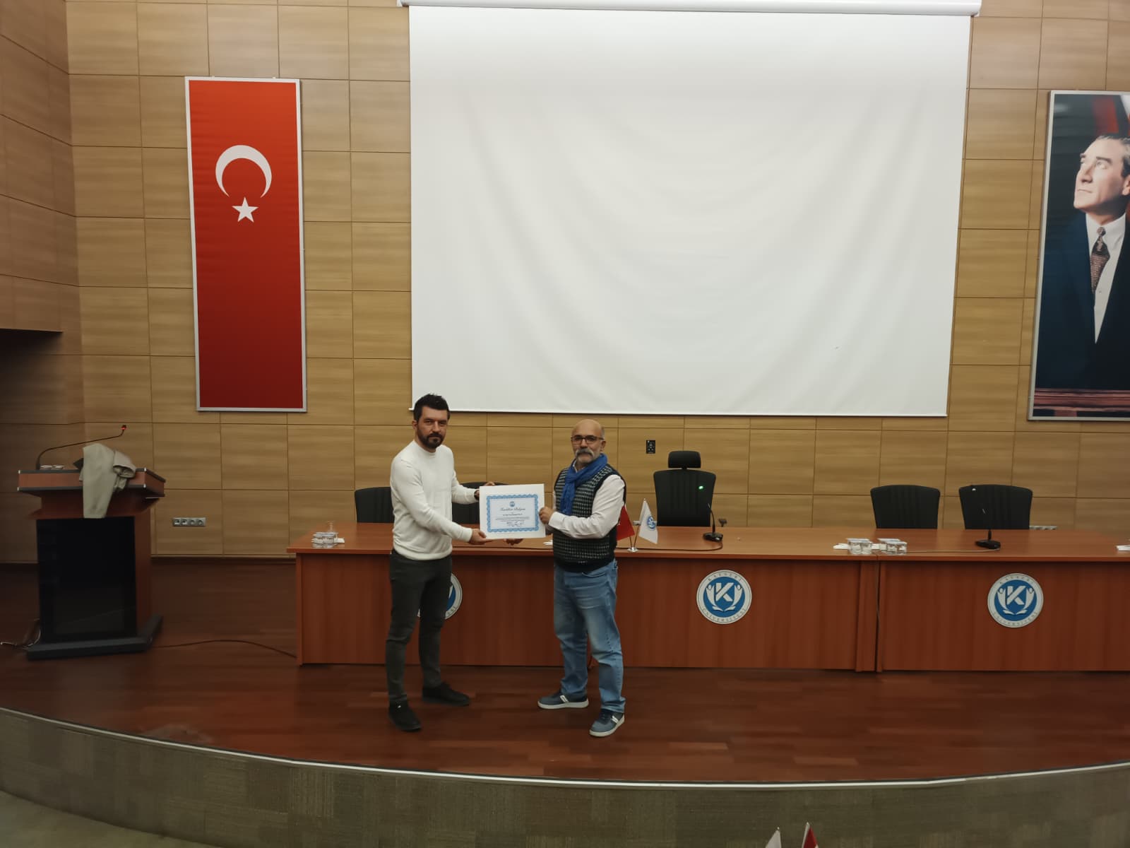 Eğitimin sonunda Şube Müdürü Süleyman TAŞ tarafından Dr. Öğr. Üyesi Osman UTKAN'a teşekkür belgesi takdim edildi.
