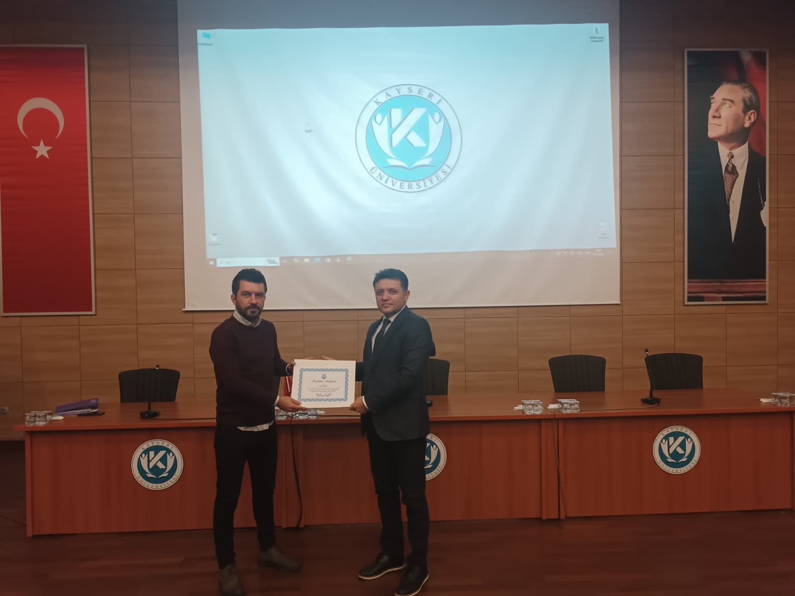 Eğitimin sonunda Şube Müdürü Süleyman TAŞ tarafından Murat KURT'a teşekkür belgesi takdim edildi.