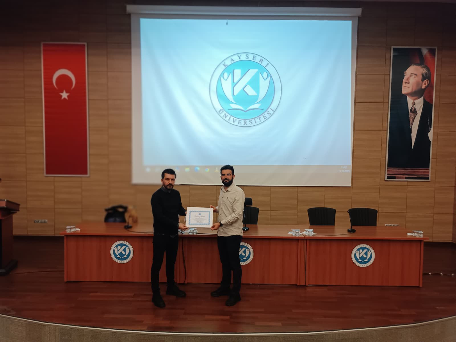 Eğitimin sonunda Şube Müdürü Süleyman TAŞ tarafından Dr. Öğr. Üyesi Emrah GÖKKAYA'ya teşekkür belgesi takdim edildi.